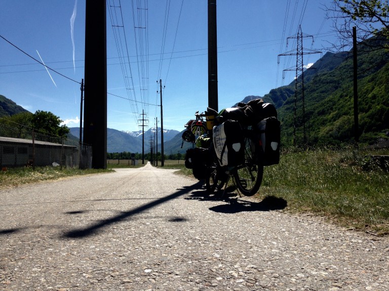 What has been really surprising is how the landscape has determined the change in languages and people. As soon as we came over the Gottardo pass (with the help of a 14min train ride as pass closed due to snow and not open until June for none motorised vehicles) the climate became warmer, vegetation more verdant with tropical undertones. Italian became the fluid tongue and Barbara seemed at home. We camped that night in a lovely “tent” site ran by a family of Italians. Nonna seemed to run the show from instructing where we should set up to cooking pizzas. Camping Gottardo http://www.campingottardo.ch is a great site which is geared up for campers not caravan as most other places have been.