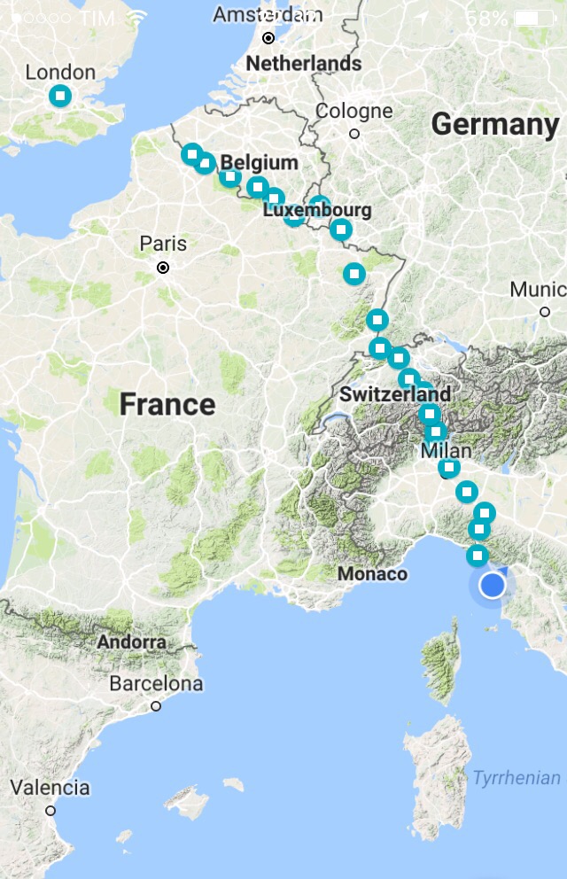 Da Lille in Francia fino in Toscana (circa 1500km) tra gli enormi trattori a lavoro nelle fattorie francesi, le industrie siderurgiche tedesche e gli scenari mozzafiato svizzeri al suono dei campanacci delle mucche.