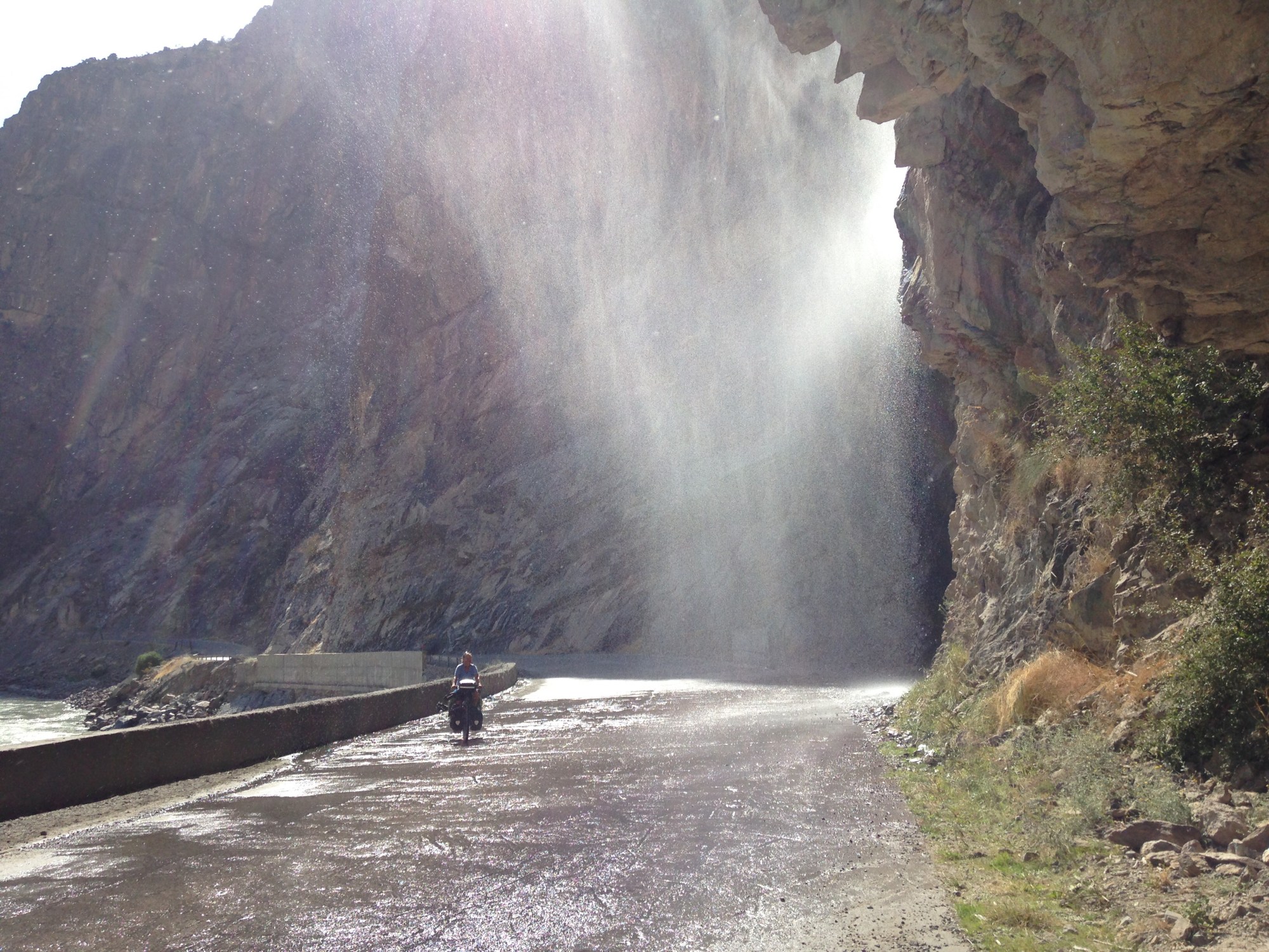 It’s taken 10 days of gravel, off road and tarmac surfaces to reach Khorog, where we are at rest. Our bodies and bikes have been bounced around from the road. At times it felt as if we were in a washing machine’ on a intense cycle. Despite the constant bashing the scenery and riding has been outstanding, some of our best on the whole trip. The mountain ranges have been tireless, with views of snow capped peaks with each turn through the gorges. We have followed the river for hundreds of kilometres and watched how it has carved, twisted and turned the natural boundary between Tajikistan and Afghanistan. I don’t think we had expected to be so close to the Afghan side, which has been fascinating to view the villages, the people working on the land and to stop in awe at the road workers carving a road into the cliff faces. At times as we watched the drill workers they would wave frantically to warn us away as an explosion was due. We would tell the force of the explosions from the rocks on the Tajikistan border which had been blown over. At certain bends in the river you could wave to the Afgani people and the kids would shout greetings. The odd motorbike would traverse the dusty track and you could hear their loud radios playing with a trail of dust left in their wake.