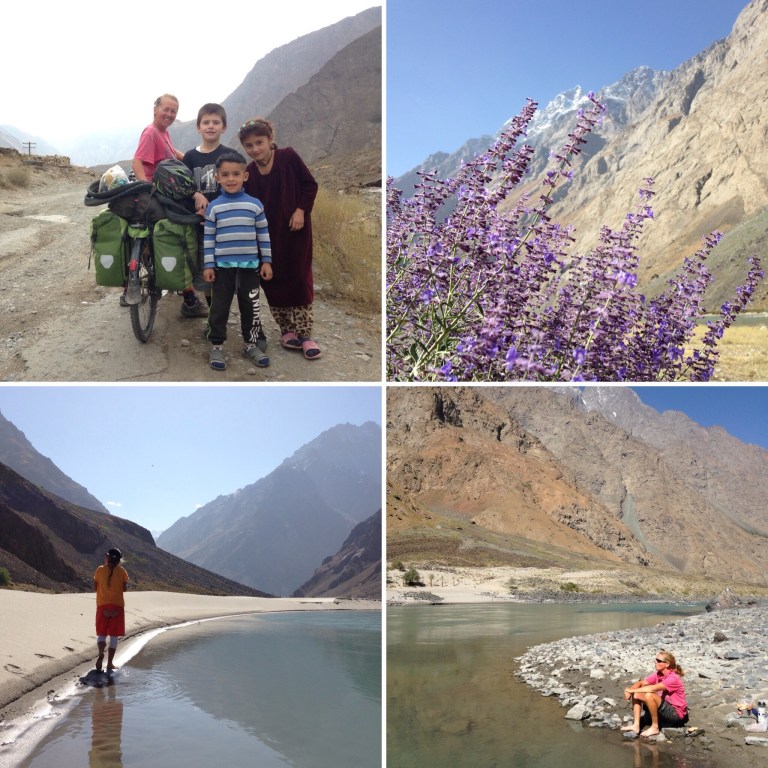 The road is shared with trucks who make the long journey between Dushanbe and into China. Almost everyday a truck driver would slow down and hand us apples or pomegranates, which we always excepted. 4×4 cars are used as taxis here but we found these to be a little free with the road. Many aid agencies 4×4 would also pass us indicating relief work is still an important support structure here. The small villages we passed were normally positioned with fresh water supply and accessible land to cultivate. Children would see you coming from miles and run to the edge or middle of the road shouting and screaming; what is your name, how old are you, or would try and get you to slap hands (more football celebrations) but with both hands needed on the handlebars kids became annoyed at the lack of contact.