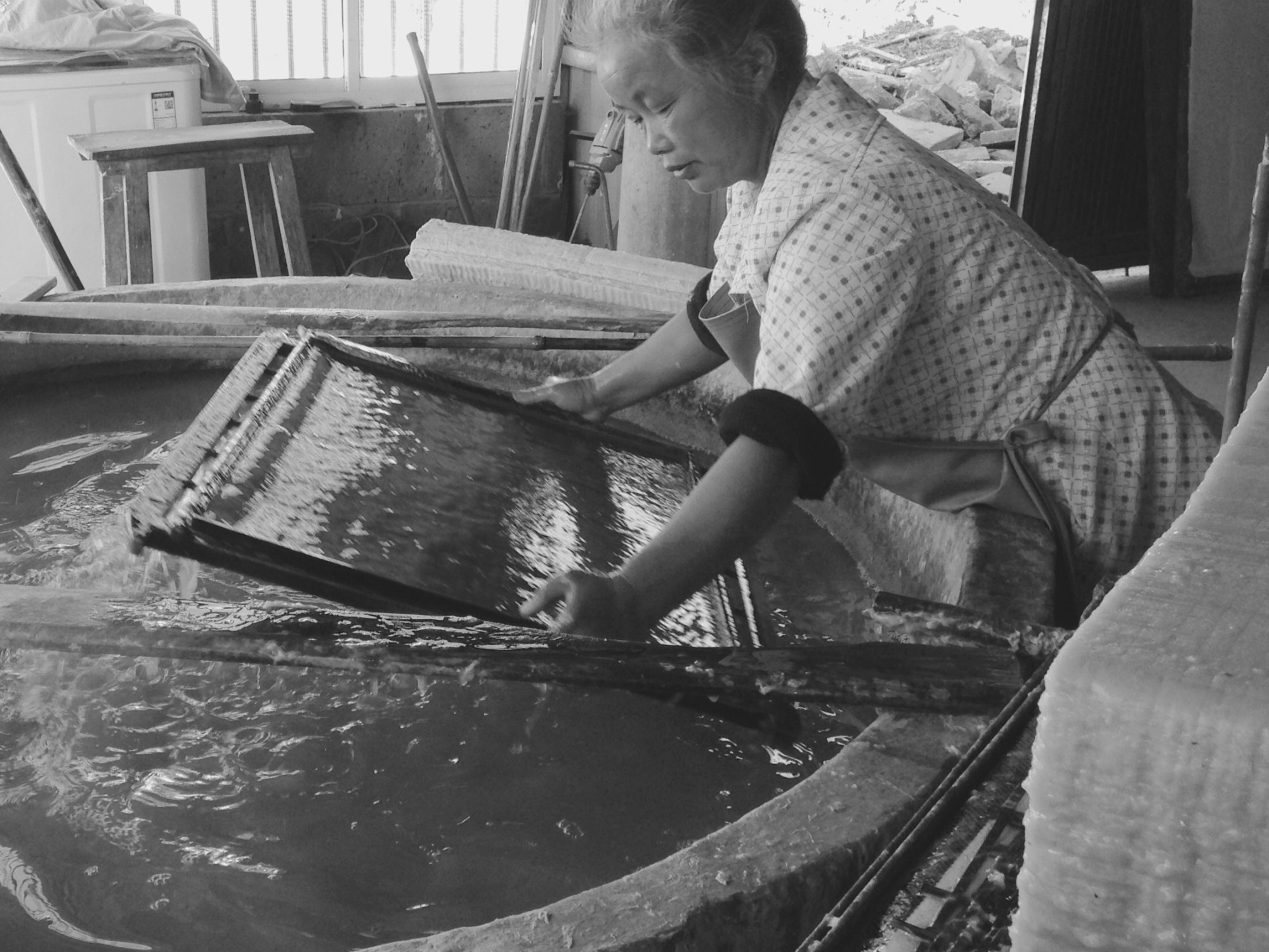 The craftswoman who worked for the guesthouse/papermaker where we were staying was a young woman and had been making paper for 14 years already and she normally makes approx 1200 sheets of paper a day. Her technique was mesmerising and her skills were seamless. If she was dissatisfied with a sheet she’d place it back into the vat and form another.