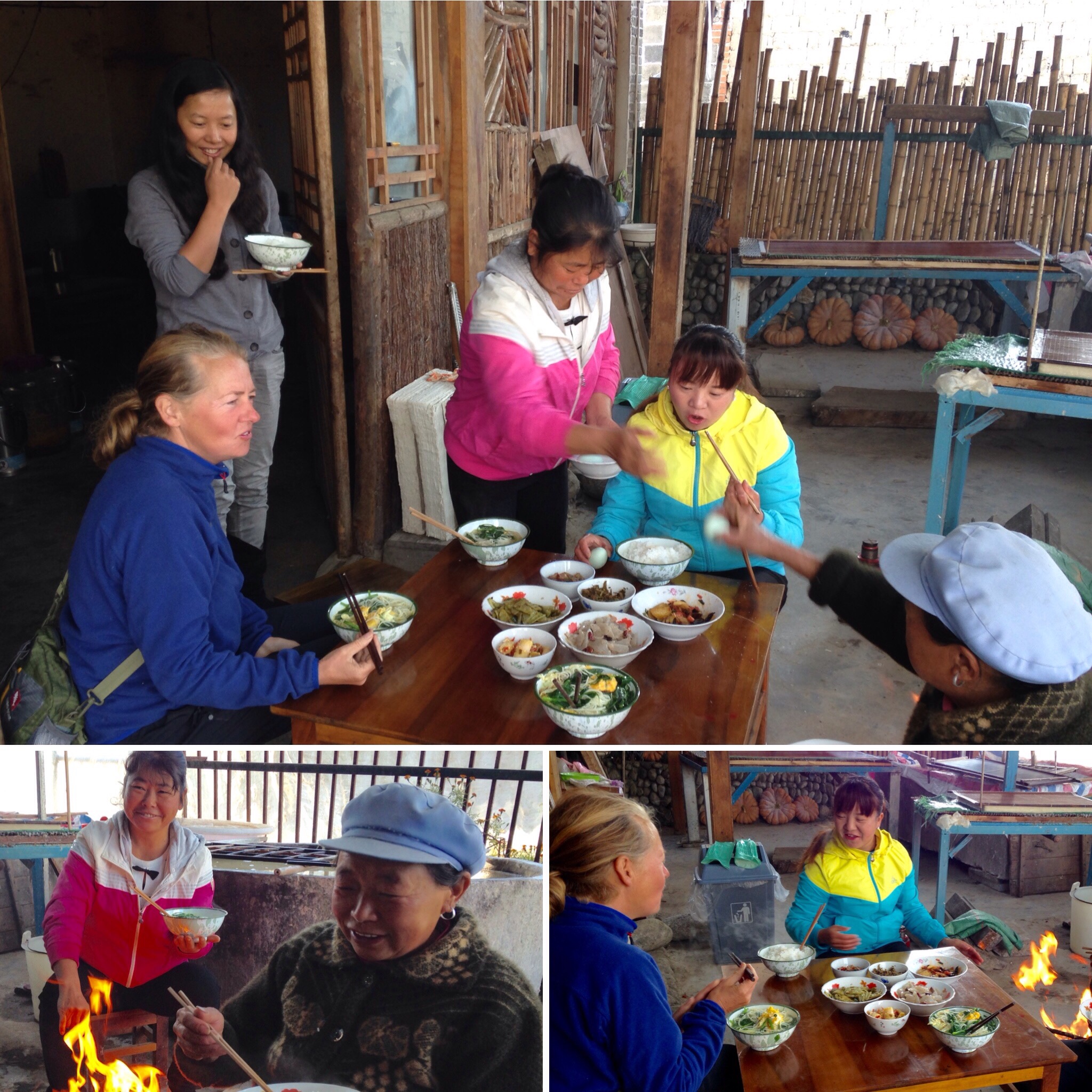Soon 6 of us were sat around the table and fire eating a rich and delicious breakfast, which was a substantial meal as this family had serious work to do. We laughed, smiled and shared a meal with this warm hearted and hard working family of papermakers. Language was no major hurdle as we shared a common respect and warmth (plus we had google translator). These women rocked!