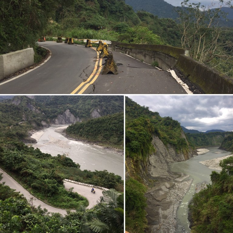 With a break in the forecast we hit the route no. 1 and thankfully the rain was light. We stayed in a hostel and stumbled into a supermarket which gave us some home treats for the coming days. We had been warned by everyone we met not to cycle the next 100km which took you through the world’s highest cliffs. Earthquakes and landslides (after days of rain) could block the road and there was no room to cycle next to trucks. We followed their advice and took no unnecessary risks. Taiwan is set up for cycling and railway stations have ramps, lifts and there are several trains you can take your bikes on. You pay half price ticket for your bike, which at £1.50 is nothing to complain at. Within 90 minutes we were on the other side of the notorious cliffs and set out to climb into Taroko national park. It had been raining for days and the gorge was full,of water, the road had been cleared of recent rock falls but we climbed with caution. Especially as the hut we passed was loaning out free helmets for walkers. As several tourists had been killed in a hot spring when rocks fell onto them several years ago. We were already wearing our cycle helmets as we cycled up the twisting road and waterfalls cascading from high mountains. White marble river beds and turbulent waters had left their marks here. We camped the night in an official free campsite again, we were the only ones.