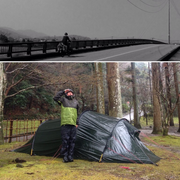 The next few days of cycling took us through the hills and along the coast roads. We camped along the way and enjoyed both wild spots and official paid sites. A few sites were located next to onsens (under £2) and this combination of camping and a hot soak after a day of cycling is heaven. We got quite addicted to them and by afternoon of another days cycling we’d map out our destination based on a hot spring and possible camping spot. We’d either look for a park, green space or shelter marked on the map. We had a couple of very wet cycling days and this drove us to take advantage of a budget hotel chain so we could dry out and enjoy the luxuries of a room and a buffet breakfast. The Japanese have a saying for March weather “sankan-shion – three days cold, four days warm”, which we can certainly testify to.