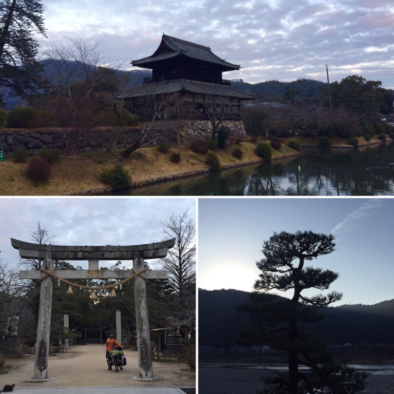 We cycled through the dark streets of Okinawa and felt the last early mornings warmth as we approached the ferry terminal. The ferry crew took our bikes and a young women showed us to our appointed space on the ship. She opened the door to room A, a female dorm. Well, not a conventional bunk bed room but a Japanese style room with approximately 25 mats, blankets and box pillows laid out on the floor. We spent lots of time watching the winter Olympics on a large screen with several other passengers in the open space, with obviously Japanese sports focus. We ate a good canteen meal and settled down in our room, which really helped with the boats rocking. As I drifted off I couldn’t image this tranquility or concept on a ferry in Europe. There was even an onsen (communal bath/shower room) on board. The only downside to Japanese ferries are bikes have to be paid for, where at home they normally go free. ( Fare: £115 per person including bikes. Distance approx 650km).